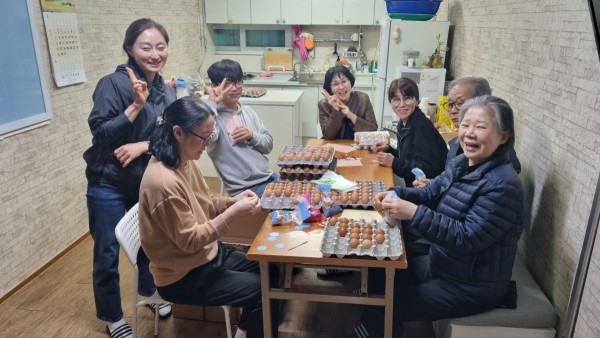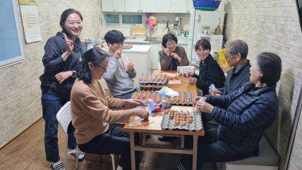 금요예배 후 모두 함께 모여 부활절 계란을 포장했습니다^^